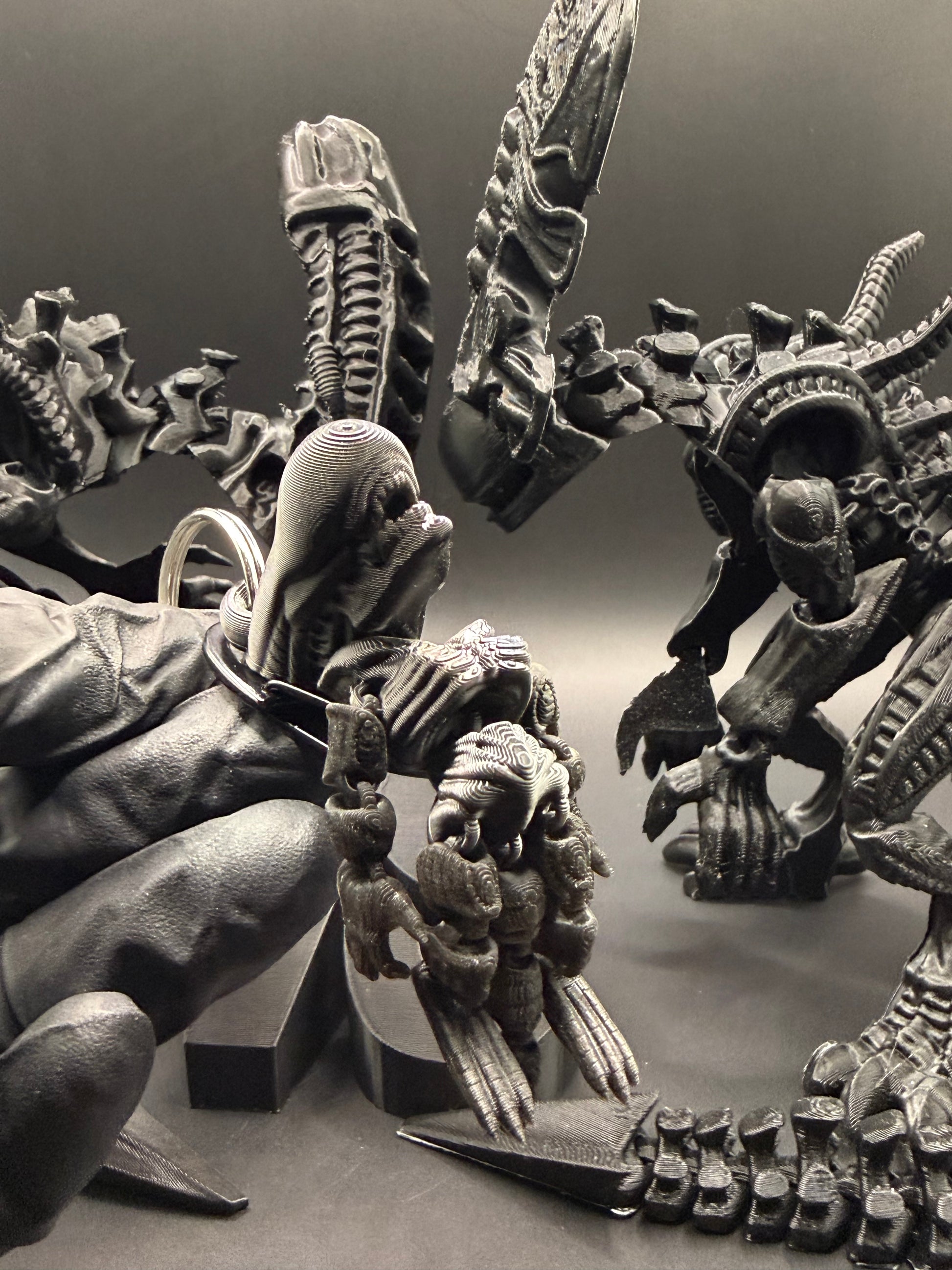 Alien Xenomorph vs Alien Queen. 1-Xenomorph large is movable made in black, 1-Alien Queen large is movable made in black, 1-Alien keychain made with black resin, 1 vs logo sign made in black color. Perfect for Alien collectors ready to be shipped. N